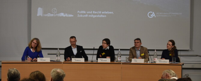 Knapp sechs Monate lag die Auftaktveranstaltung zurück, als am 12.05.2023 in einer finalen Podiumsdiskussion die Ergebnisse des Projekts „Politik und Recht erleben – Zukunft mitgestalten“ vorgestellt wurden. Im Alfred-Hessel-Saal der Paulinerkirche konnte so den Antworten auf die Frage, wie Bürger*innenbeteiligung bei der Klimawende ausgestaltet werden kann, noch einmal abschließend nachgekommen werden. Die Diskussionsgrundlage bot hierbei